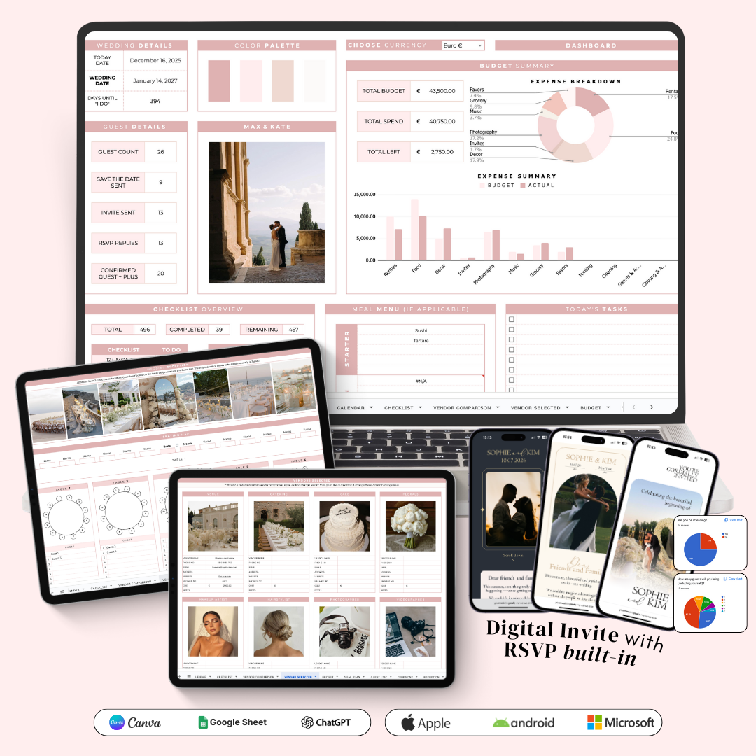 A proven system to plan your big day 💍 Track your budget, organize guests, and much more with just a few clicks